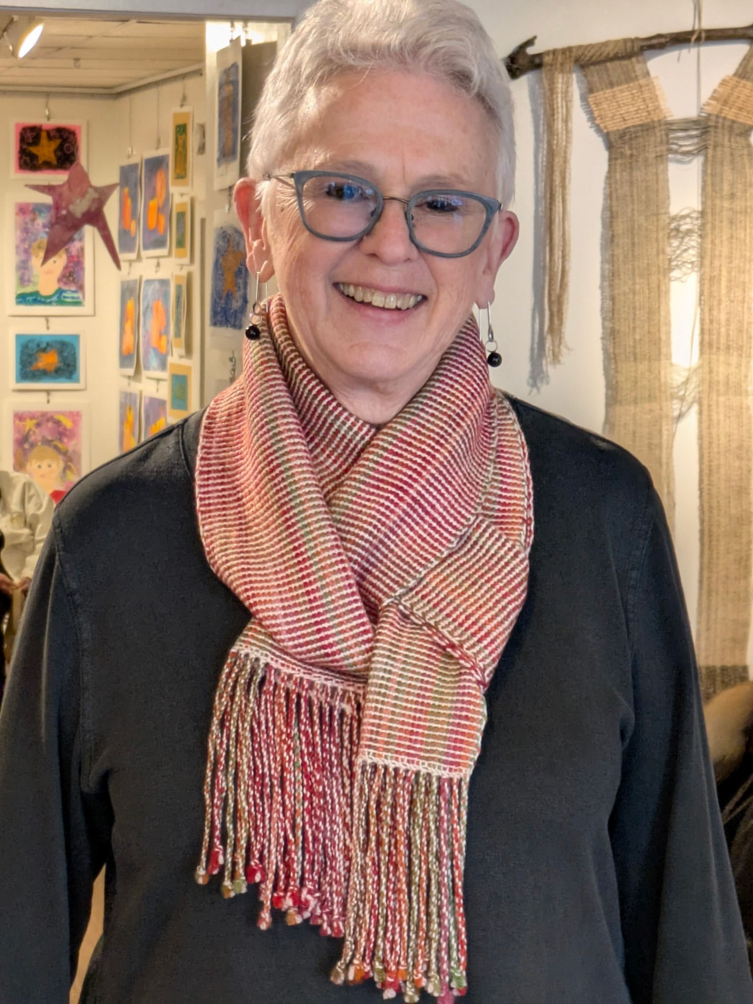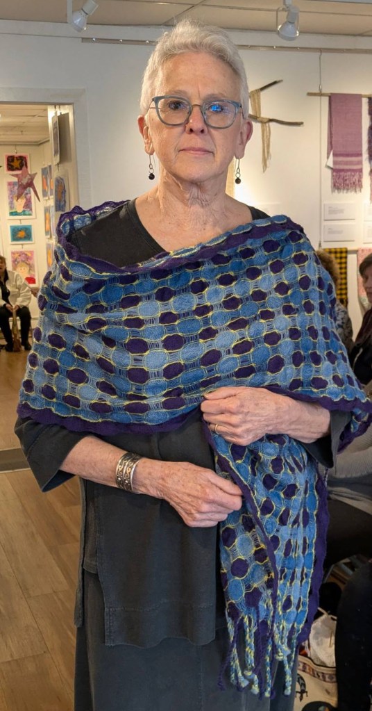Each spring the Duneland Weavers’ Guild presents an exhibit of members’ weaving and other fiber art at the Chesterton Art Center. The exhibit opened with a reception and style show.