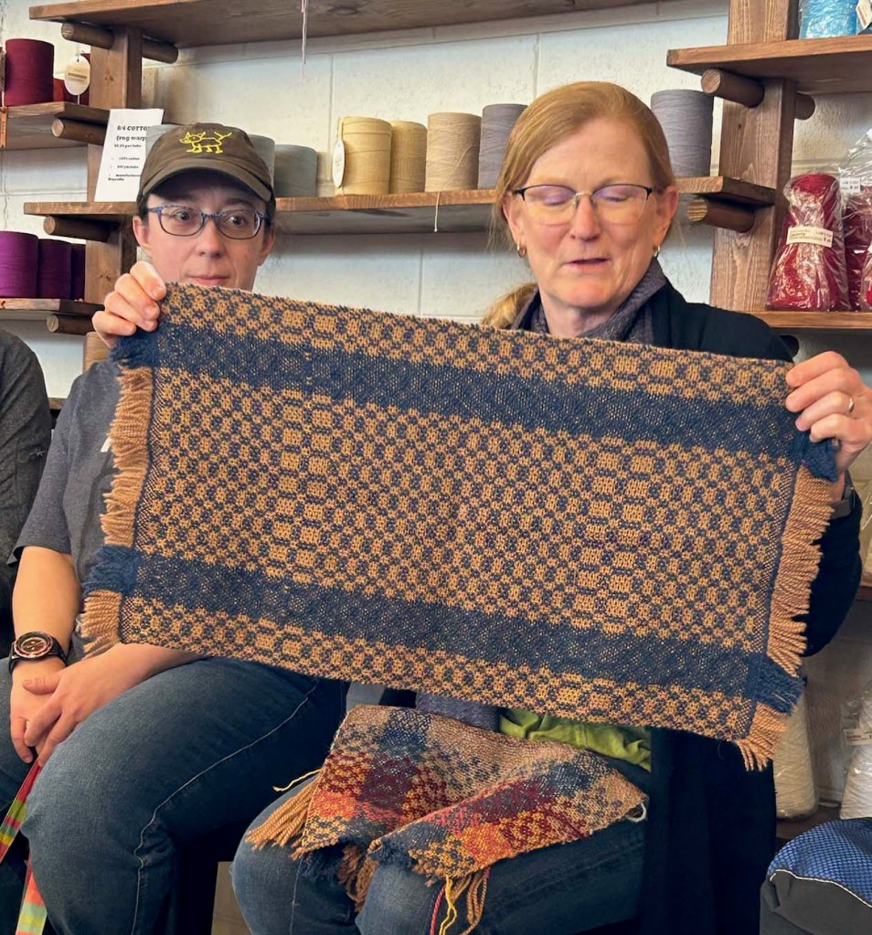 Natalie Drummond shared her approach to creating colorful deflected doubleweave designs. On the two days before the meeting, Natalie. held a workshop for nine DWG members to learn her approaches. The participants each identified their favorite design as the starting point for a complete project.
