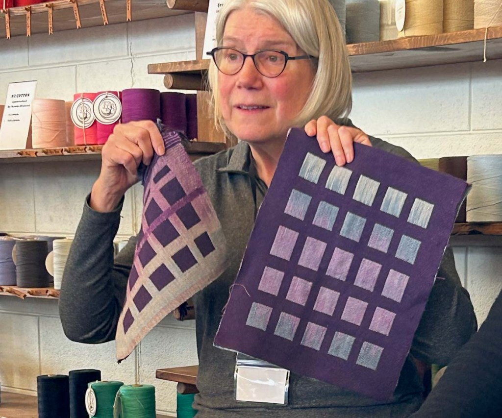 Denise Kovnat returned with a fascinating presentation on the many techniques and possibilities for creating dimensional fabrics. The three basic elements for these fabrics are structure, active and inactive yarns, and finishing techniques. The results make the most of an often-overlooked aspect of weaving: that of texture and depth. By adding color and form, weavers can maximize the potential of our craft to create imaginative fabrics with great visual and tactile appeal.