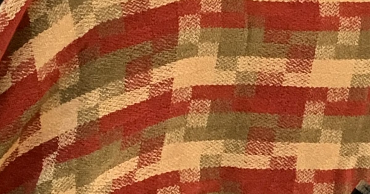 Lisa’s turned twill stole in olive, a rich red, and deep beige highlights the versatility of this draft. What the picture does not capture is how wonderfully soft and comfortable it is.