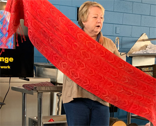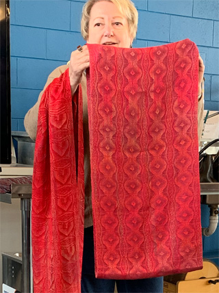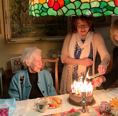 One of our members, Elouise Schaller, just celebrated her 102nd birthday. Elouise was a fine weaver who joined the Guild in 1984 and has been a good friend of many Guild members. Below is a photo of Elouise with her 102-candle cake at her recent birthday party.