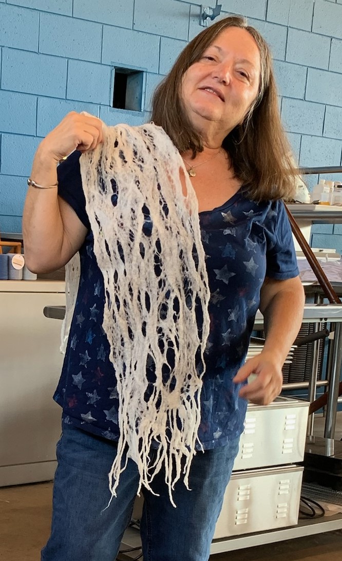 The September meeting featured the many projects accomplished by our members over the summer. In addition to the beautiful fiber designs, Joyce Hicks published another novel!